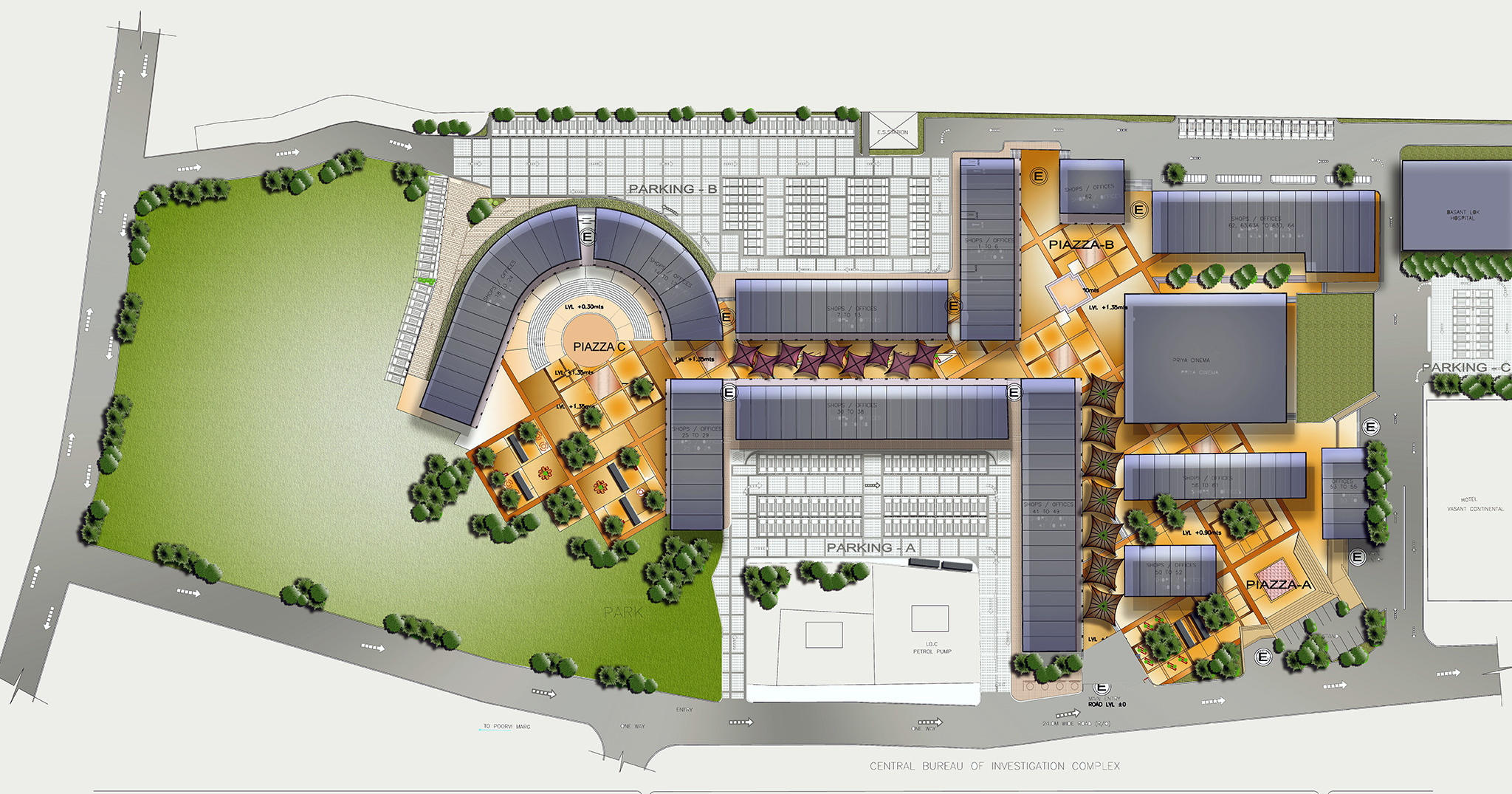 With the uniform spread of traffic and efficient parking/stack parking along the periphery of the Complex, the inviting and universally accessible multiple pedestrian entry points is a key factor in infusing life into the public spaces.