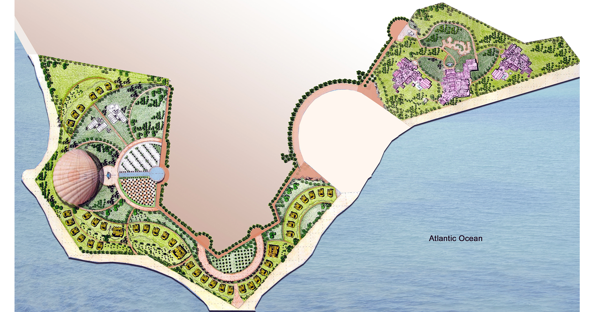 • The Crown at the top of the shell houses the Spa and restaurant with an Infinity pool overlooking the Atlantic from the Vantage Point.